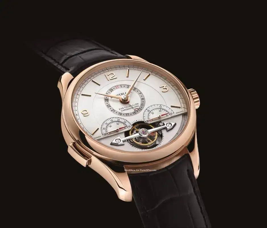Caja en oro rosa de 44 mm por 14.79 de altura. Calibre MB R230 de remonte automático, ExoTourbillon y cronógrafo monopulsante con rueda de pilares y embrague vertical, reserva de marcha de casi 50 horas con doble barrilete.
