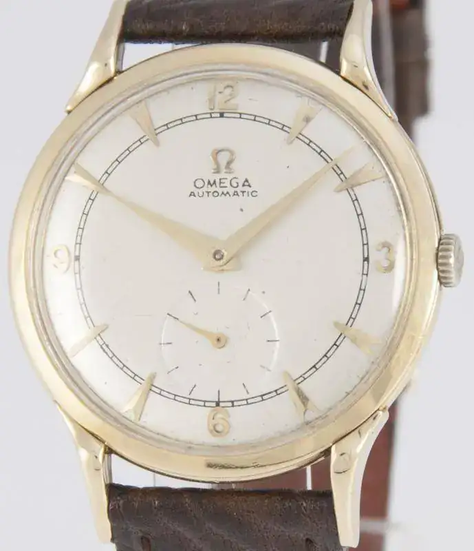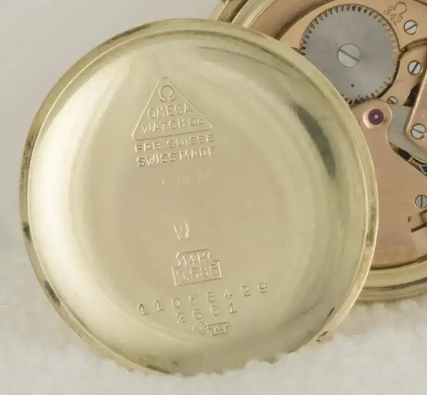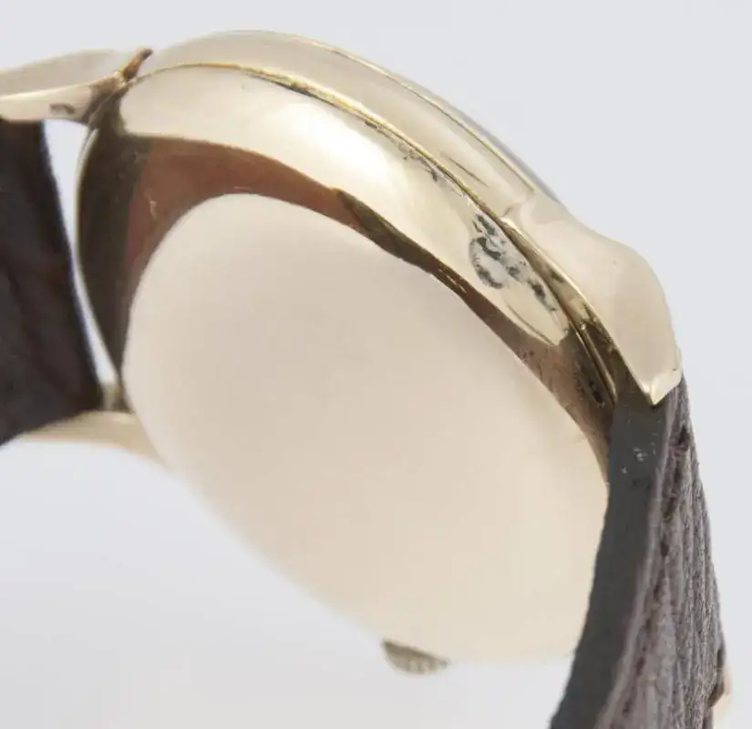 Hoy estuve mirando un reloj Omega Calibre 342 caja de ¿oro 14k?, la prueba de oro en la caja da 14k y en la tapa se puede ver el contraste oro de 14k 0.585, hasta aquí todo bien... pero a la vista salta una duda razonable sobre si es oro macizo 14k o es chapado: en la tapa de la caja se puede ver claramente un defecto que deja ver el acero o algo parecido.