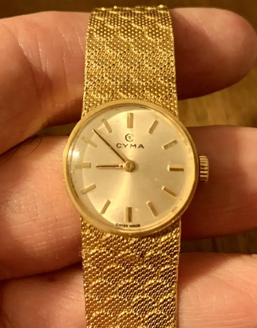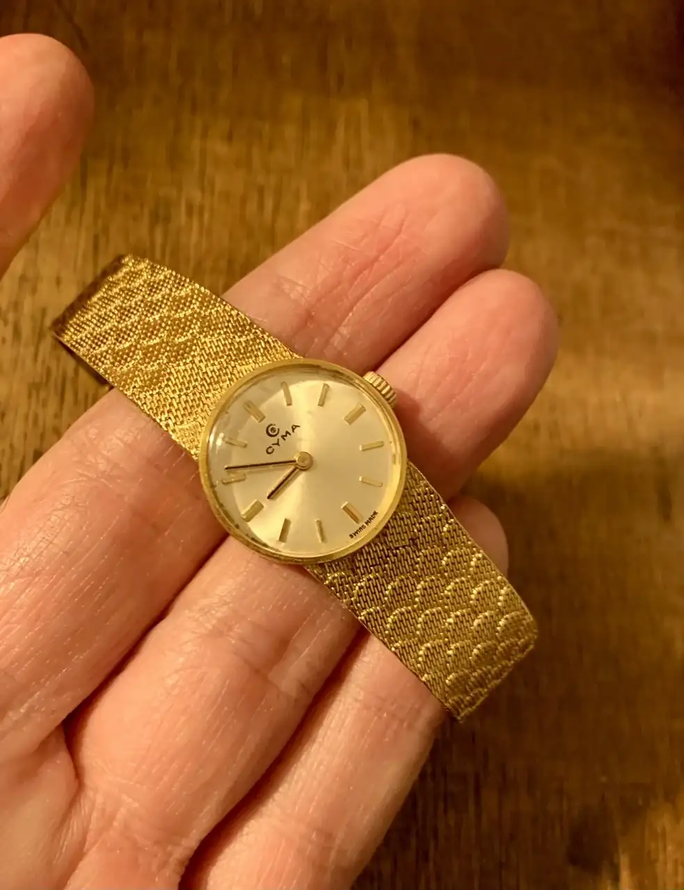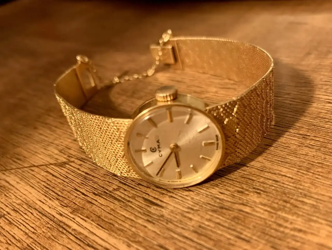 Simplemente quiero compartirlo con vosotros. Es un pequeño Cyma de oro con un brazalete que imita las escamas de un pez.
