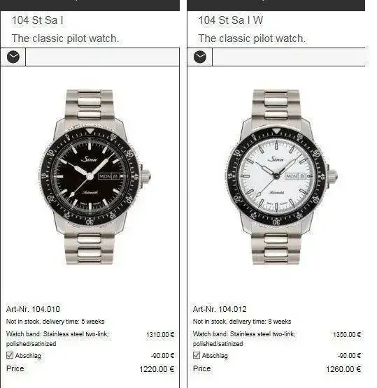 Lo que está claro es que, con esfera negra o blanca, el Sinn 104 es precioso, no sé por cual me decidiría.