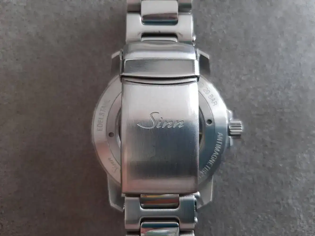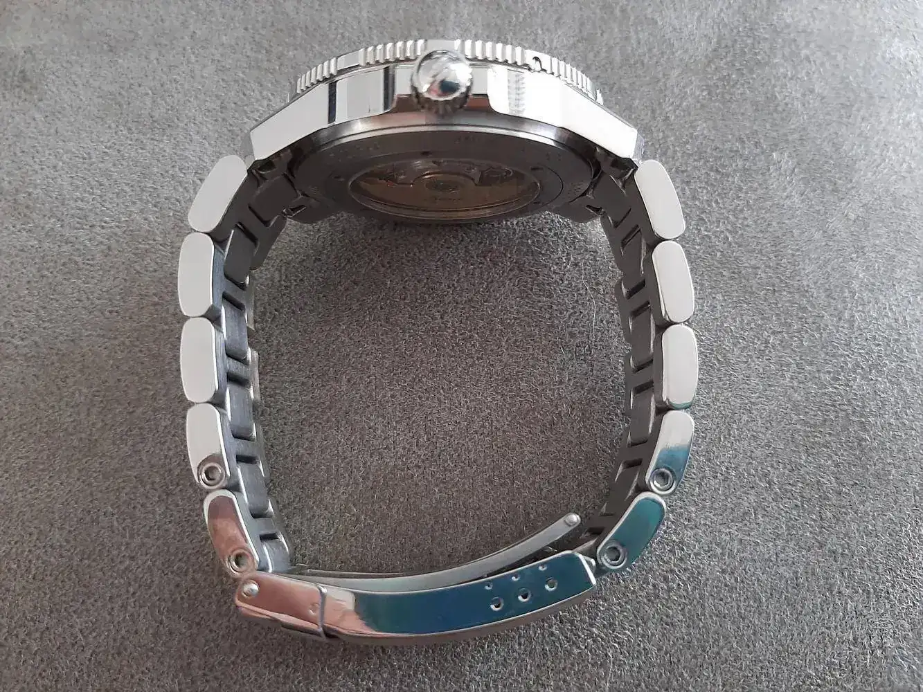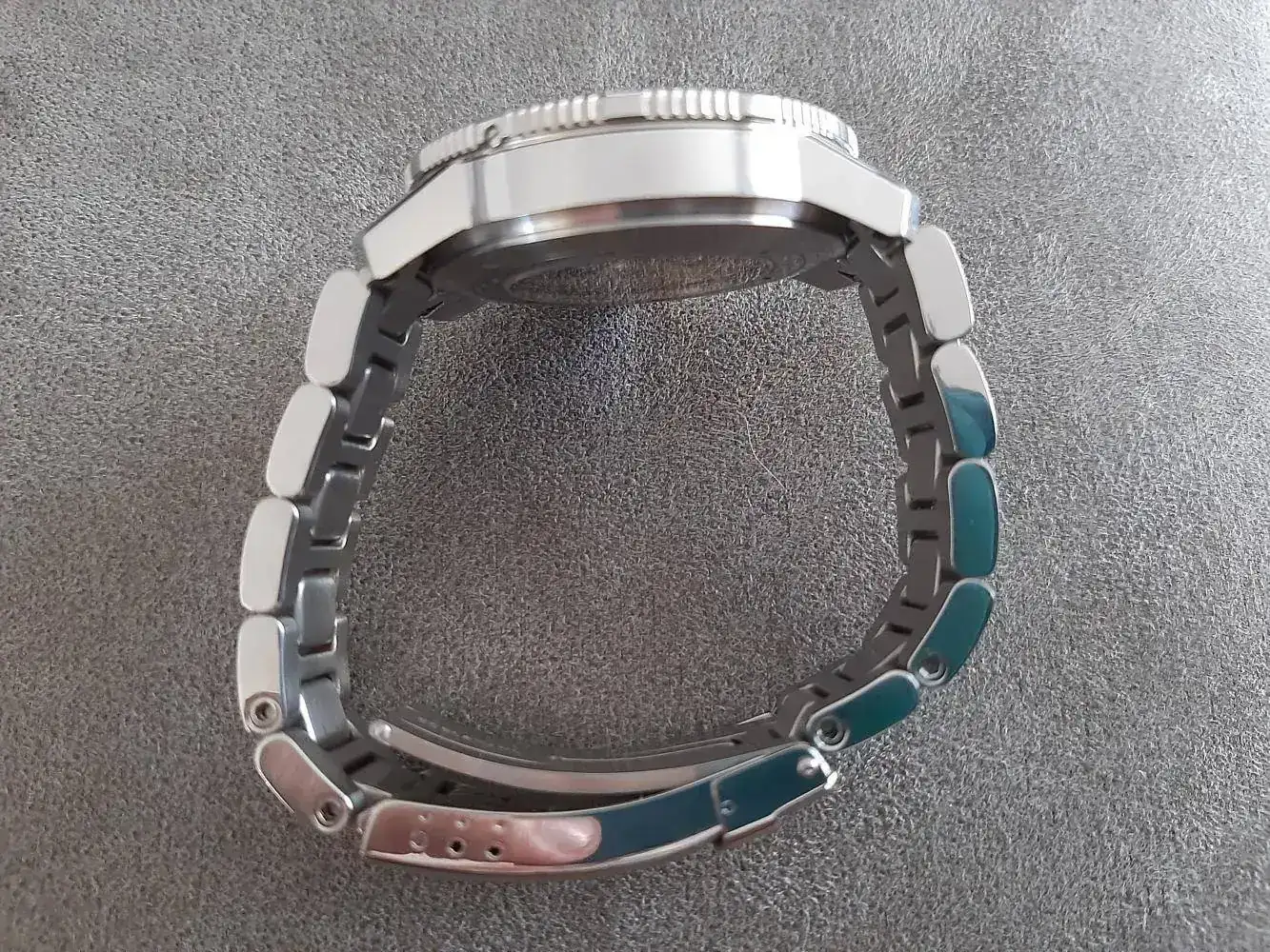 El armis del 104 viene cepillado con los eslabones centrales a espejo, y yo he pulido los laterales porq soy muy maniático de los detalles, y me gusta q la caja y el armis tengan mismo acabado.