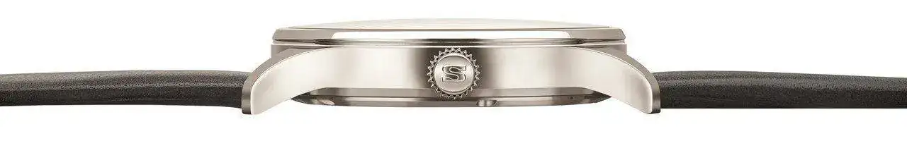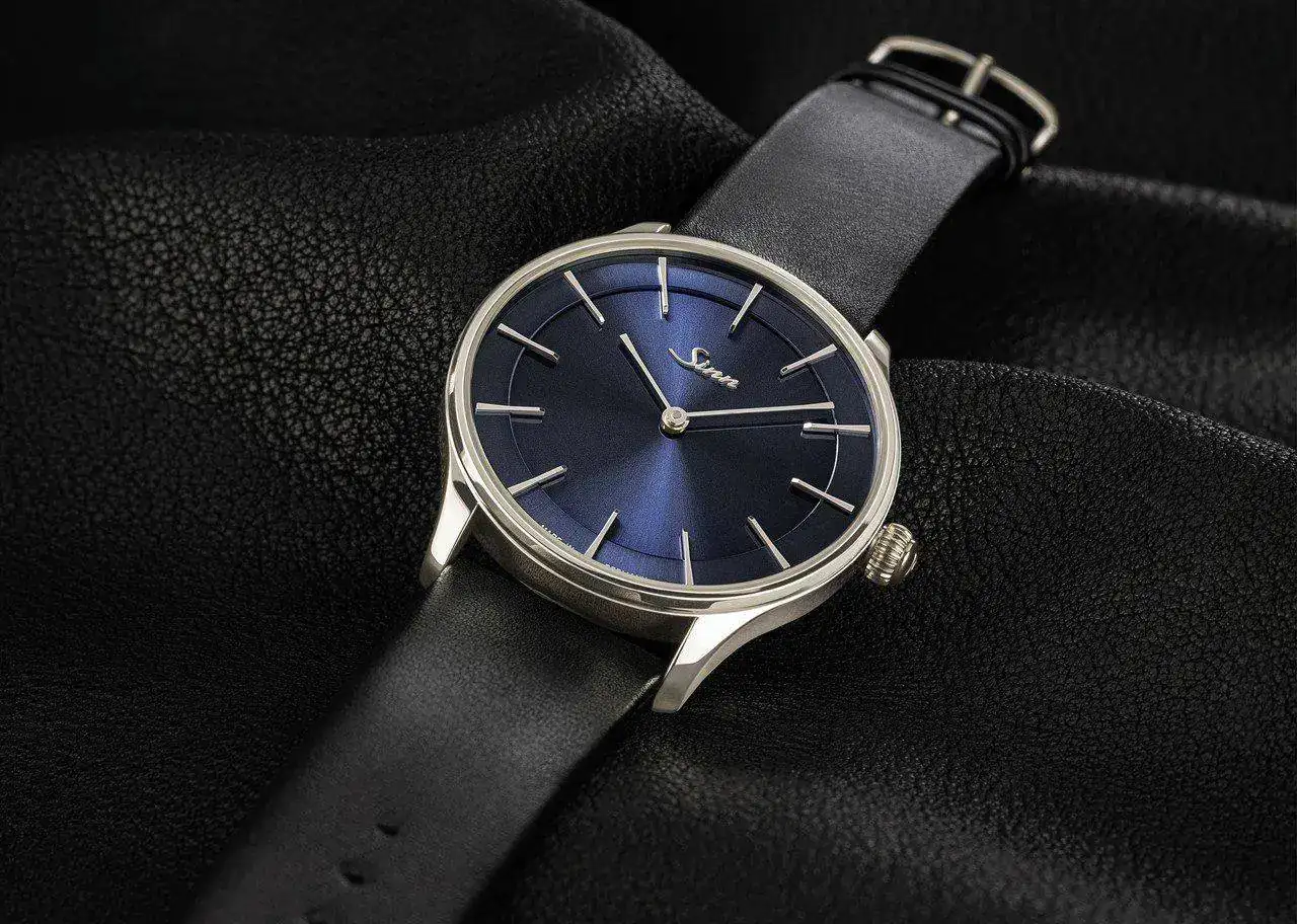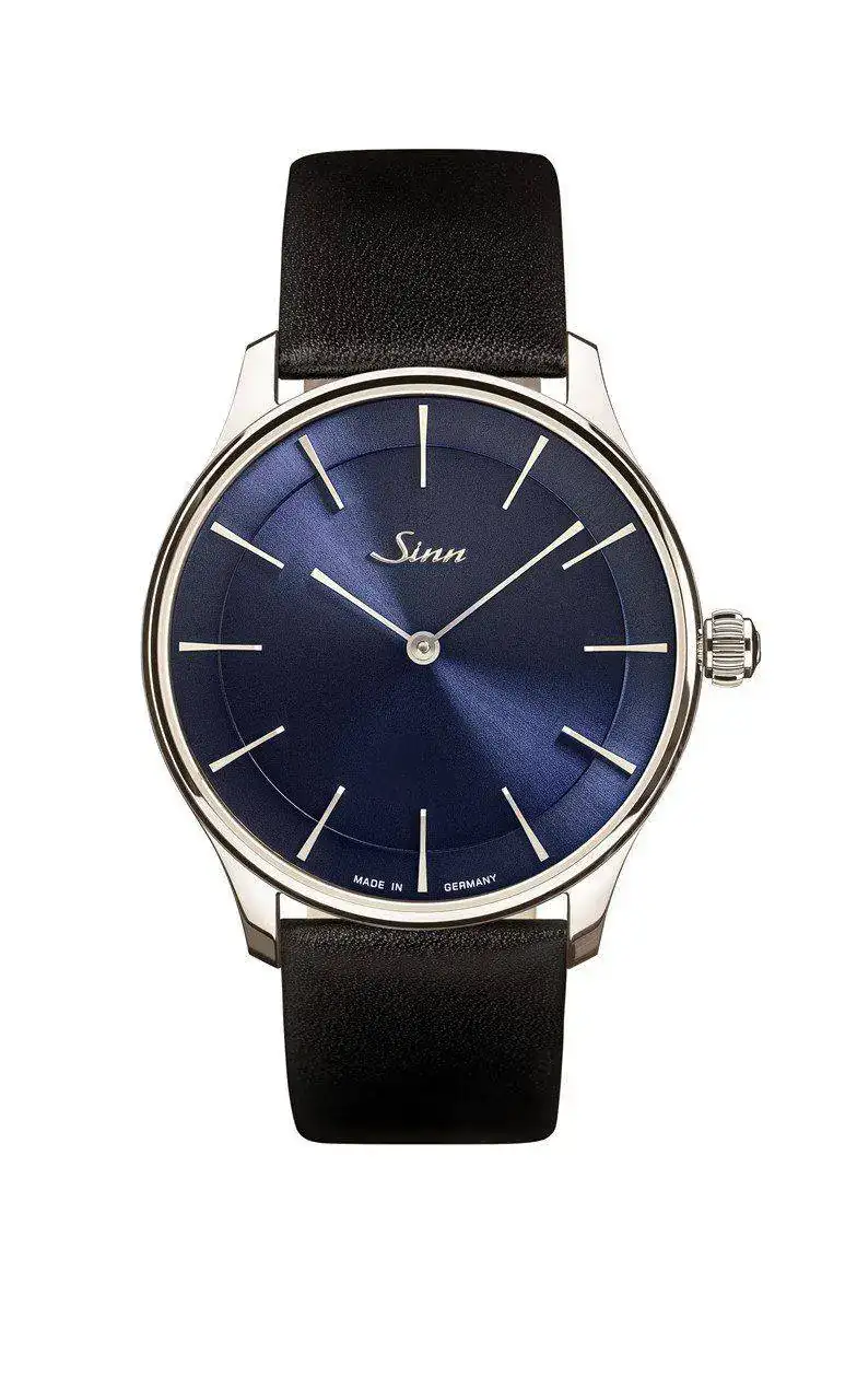 ) de esfera azul con índices aplicados que, proveniendo de Sinn, no podía olvidar los aspectos técnicos y ofrece una resistencia al agua de 10 bares o 100 metros gracias al D3-System que incorpora, donde la tija se inserta directamente en la caja, sin tubo. Algo que, por cierto, vienen aplicando desde 2006. Por cierto, esa corona-cebolleta...