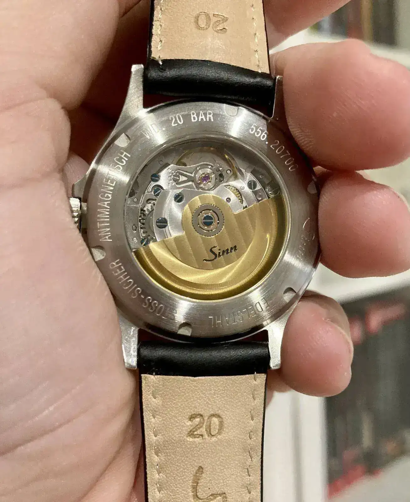 en lo que he fracasado estrepitosamente es en la correa de cuero marrón vintage que también les había comprado a Sinn. Es demasiado larga y tiene algo de juego con la caja en la parte superior. Voy a intentar devolverla, espero no tener problemas. Una pena.