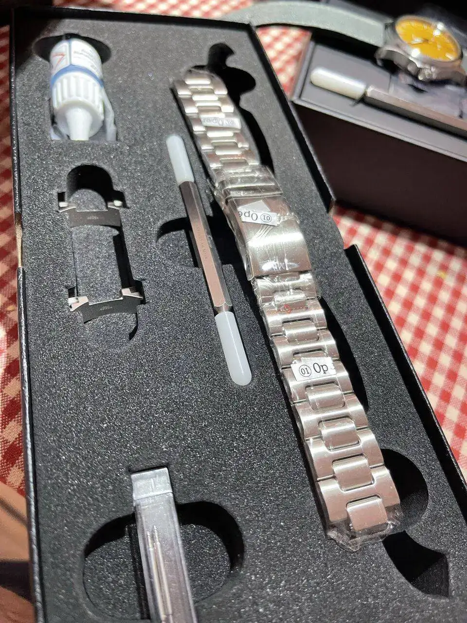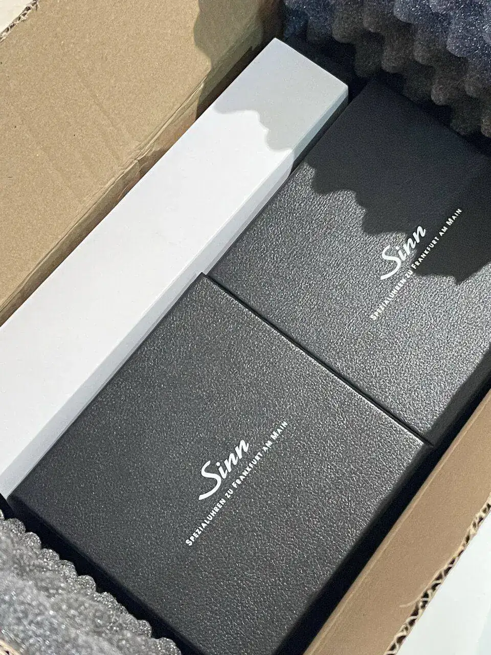 Si habéis sido más observadores todavía , habréis visto una tercera caja... esto es debido a que mientras esperaba que fabricaran y enviaran el reloj, leí los varios hilos que hay sobre el 556 en el foro, además de ver unos cuantos vídeos, y bueno siendo yo mucho de armis , me puse en contacto con Sinn ( que recibí una atención rápida y de primera ) para ver si en el mismo envío me podían añadir el armis , como así fue , también añadir que han cumplido los plazos escrupulosamente y aquí la tercera caja .