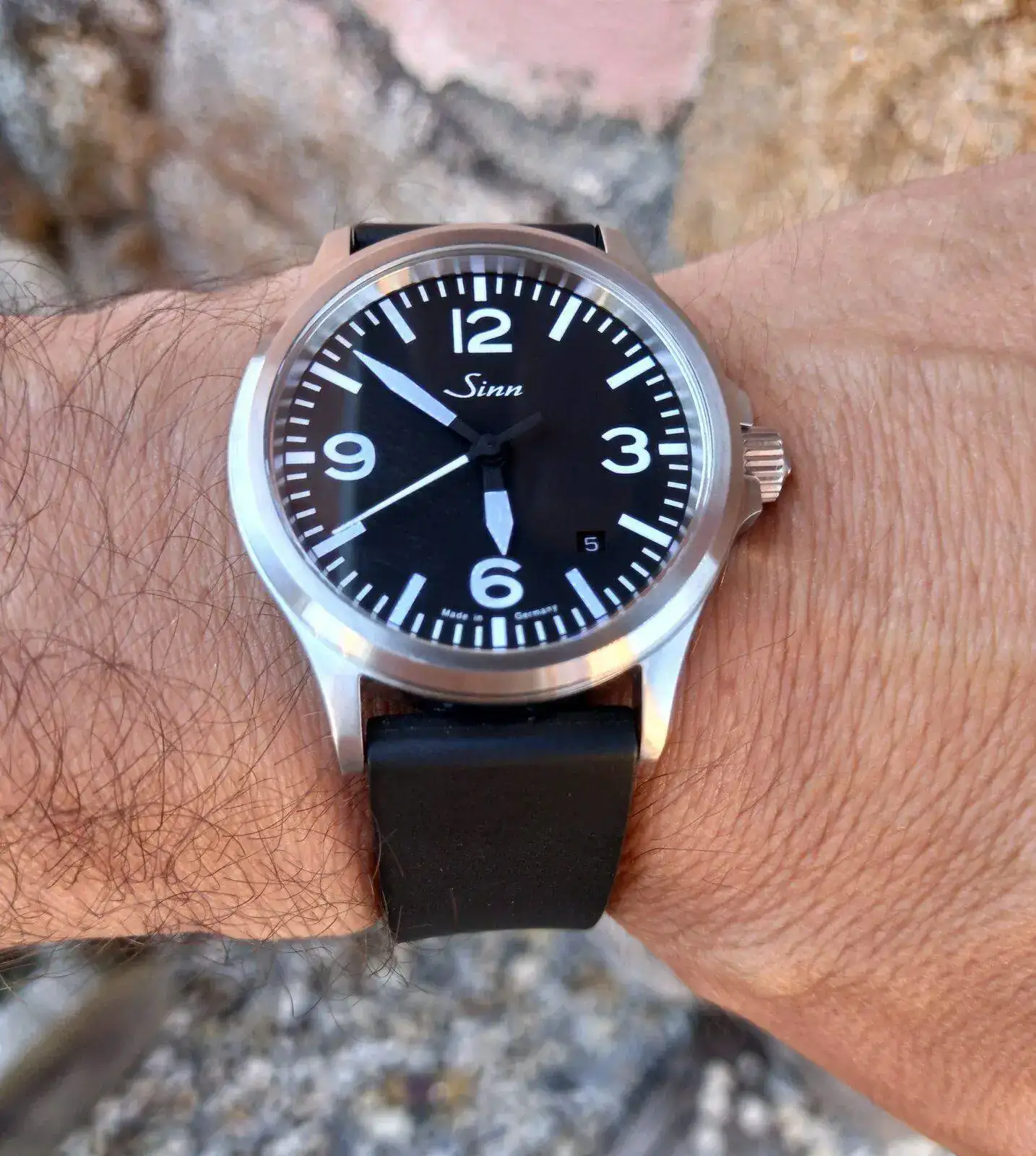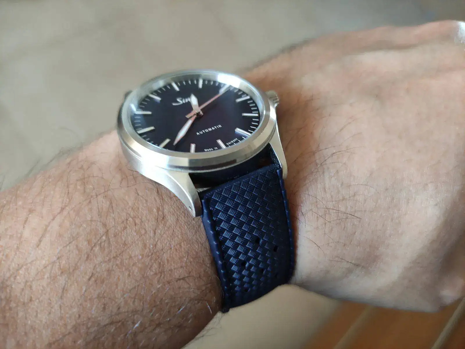 Nunca he sido de llevar brazalete o caucho y me tiraba un poco atrás comprar el Sinn con la correa de piel porque no me terminaba de gustar.