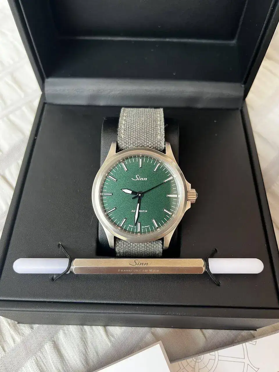Vendo Sinn 556 Verde Esmeralda con dotación completa y brazalete NSA vintage que le queda fenomenal. Tiene señales del apoyo del brazalate en en interior de la caja, por lo demás impecable.