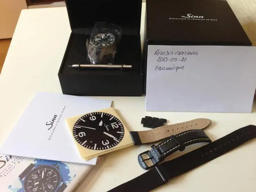 Hola amigos. Con todo el dolor de mi corazón y por causas ajenas a la fiebre relojeril, saco a la venta mi preciado sinn 856s utc, adquirido a un gran forero hace escasas fechas. El reloj es una maravilla, como ya sabreis, y os comenté en su presentación al foro. Esta con su set completo, cajas tarjetas,herramiena sinn, una correa de piel original con casi a estrenar (con agujero extra, cosas de tener muñeca de nena) y nato a estrenar. El cristal y caja estan perfectos, salvo alguna leve marca en la trasera del cambio de correa apenas apreciable y que trato de mostrar. El armis presenta pelillos y el cierre, normales del uso y que intento que veais en las fotos para que quede todo claro, pues es con el armis con lo que mas se ha utilizado. El reloj funciona con precisión absoluta.otra cualidad a destacar es la dureza de sus materiales y tratamiento, por todos conocidos. Aqui os dejo alguna de sus caracteristicas:
