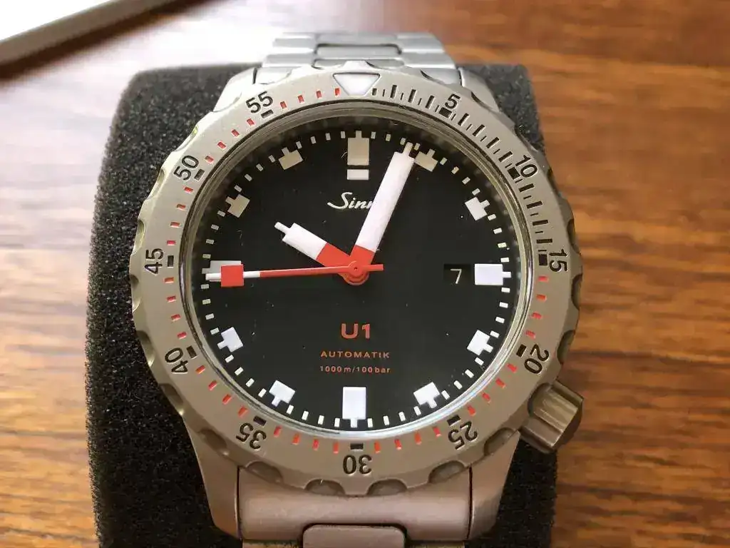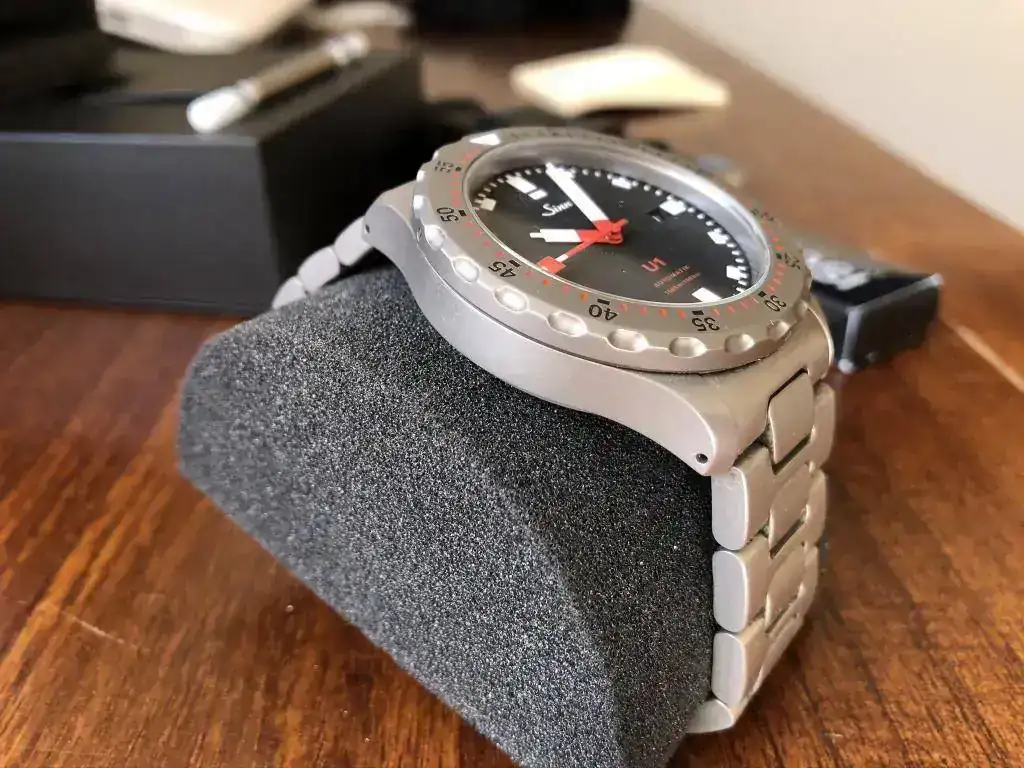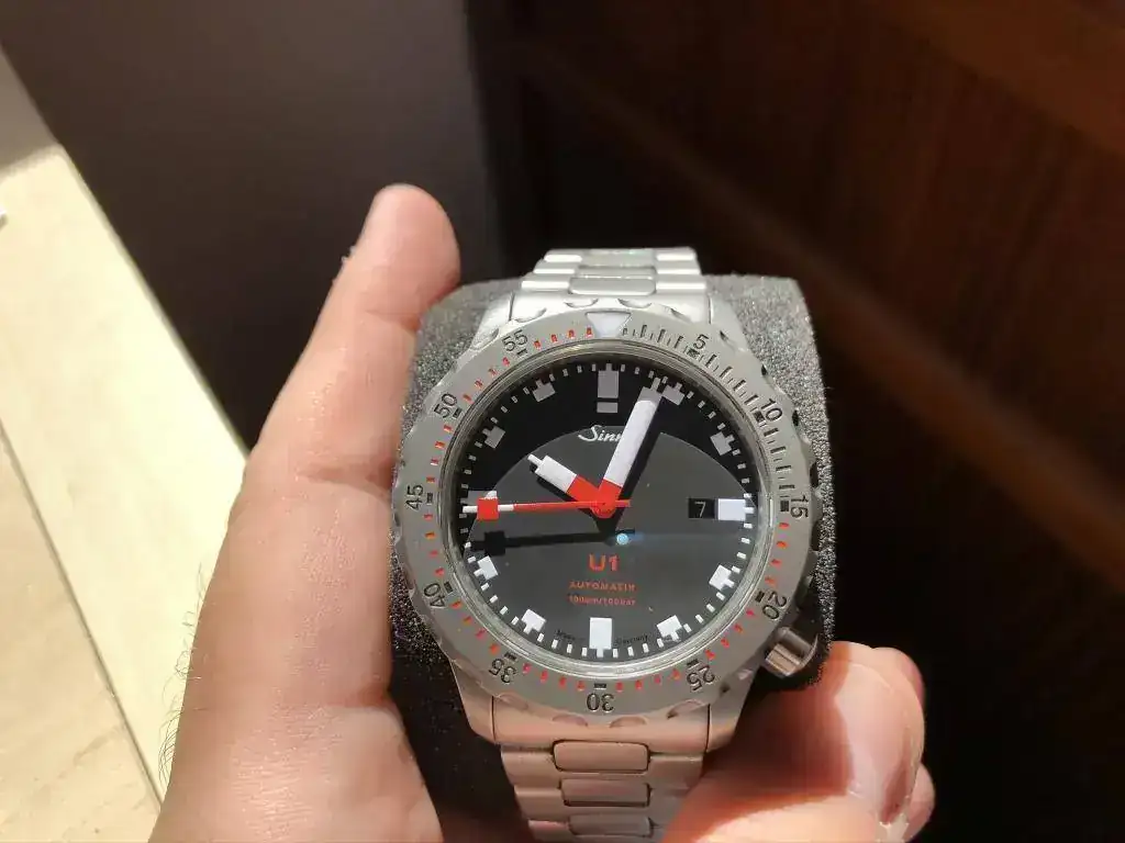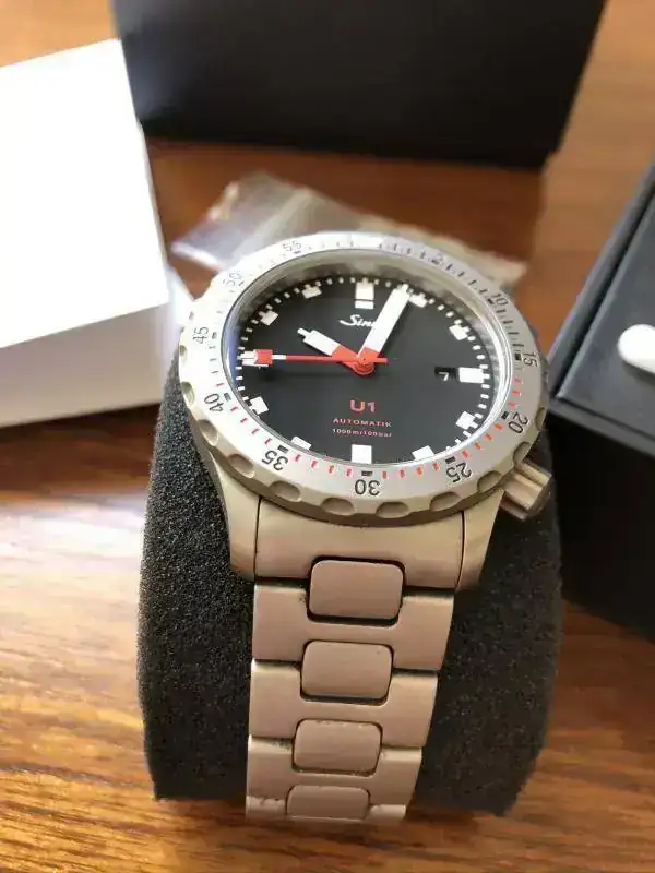 Hay poco que contar de este legendario reloj que no se haya contado ya en este foro. Hay multitud de hilos hablando de sus numerosas virtudes. Se trata del modelo 1010.010 MB72 con armis de acero y bisel tengimentado (ya sabéis, esa tecnología de Sinn que multiplica la dureza del acero y lo hace virtualmente inmune a los arañazos). Para los que no lo conozcais, se trata del primer modelo de Sinn cuya caja está hecha con acero de submarino aleman. Es un reloj de buceo que cumple con todas las normativas y homologaciones precisas para llamarse así: "reloj de buceo". El U1 es un prodigio, que queréis que os diga, y un reloj con muchísima personalidad.