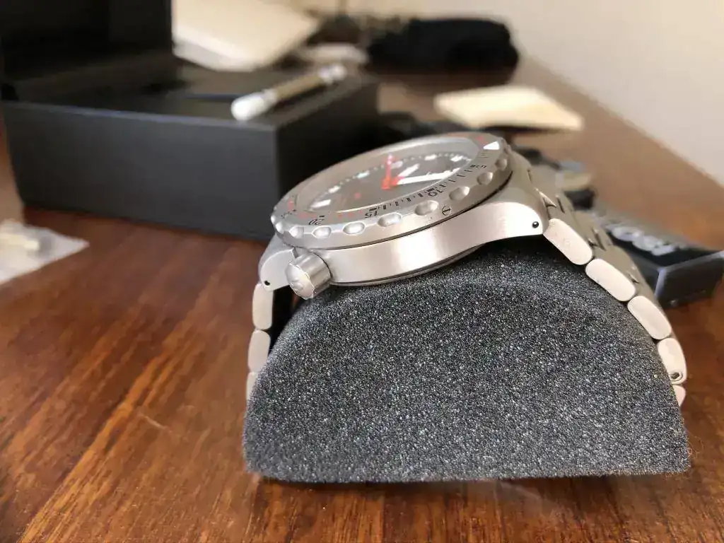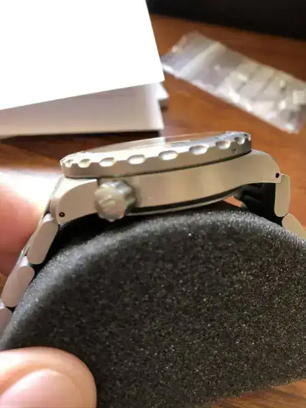 No diré que el reloj está impoluto, porque hay una zona del armis que tiene algunos pelillos (en una de las fotos creo que se pueden ver), pero su estado es francamente bueno. Lo vendo completo: con su caja de cartón, caja del reloj, herramientas, aceite, eslabones sobrantes del armis, documentación, tarjeta de garantía, factura. Todo.