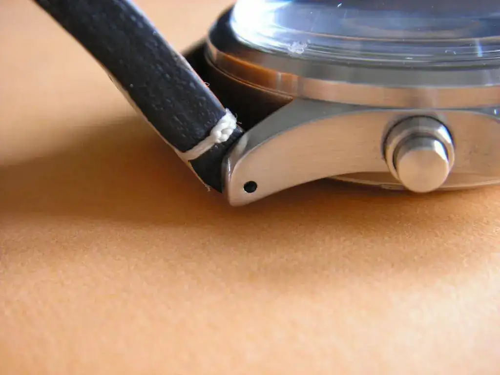 Un picotazo en el lateral del plexi, a la altura de las 5. (Se ve bien en una de las fotos), pero con el reloj puesto, hay que fijarse.