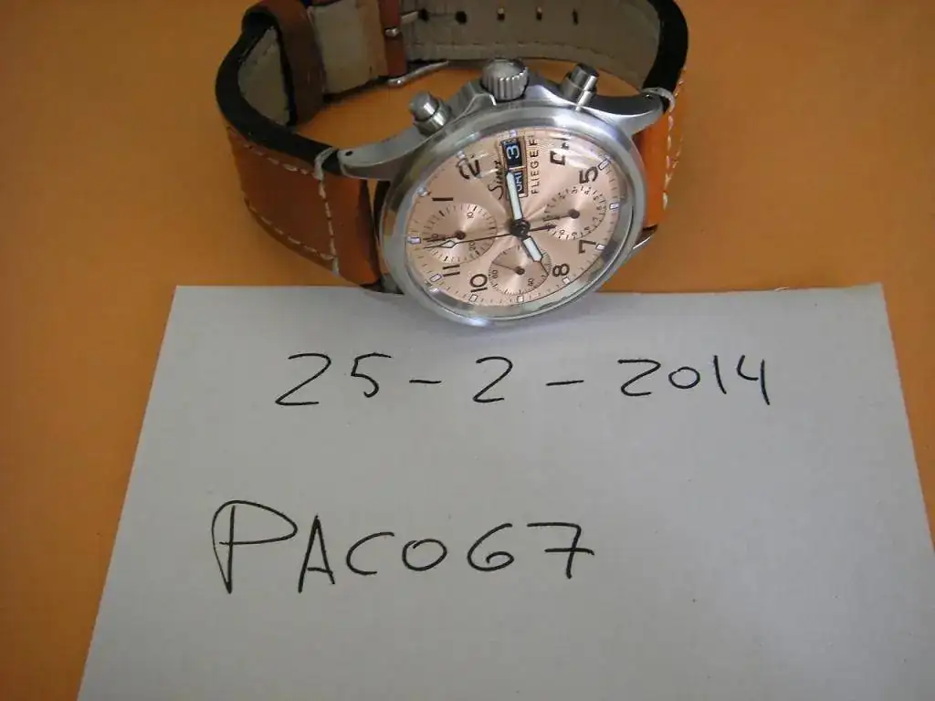 Hola. Vendo este Sinn 356 Flieger II. Funciona correctamente con una marcha bien ajustada. El reloj es del año 2005 y tiene marcas de uso que voy a intentar describir lo mejor posible.