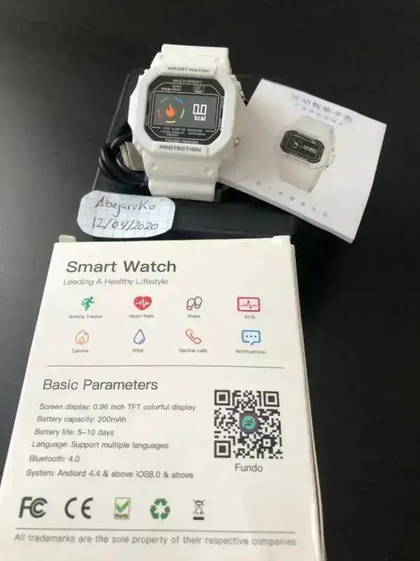 Funciones: pantalla a color tactil, vibracion, monitor de actividad, medidor de calorias, medidor de pulso, medidor de pasos, notificaciones, ECG, Declinado de llamadas.