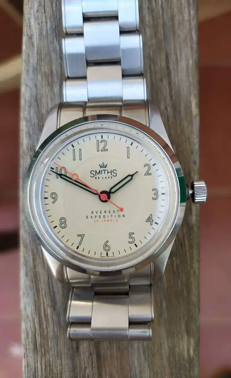 Menuda presentación que te has marcado. Yo en su momento le compré un Precista al señor Platts y es cierto que hay que ser el más rápido del oeste pero así se valora luego más el tenerlo.Tras varios infructuosos intentos, finalmente pude adquirir uno de estos relojes Smiths Everest Expedition en la página que los comercializa, https://www.timefactors.com/ . El reloj, tal y como afirman en la web, es una revisión, reedición u homenaje (original pues tienen los derechos de la marca Smiths) del model Smiths A454, pieza ésta que fue la que llevaban como dotación los integrantes de la Commonwealth Trans-Antarctic Expedition (CTAE), expedición dirigida por el británico Vivian Fuch y con Edmund Hillary al mando de un equipo de apoyo. Dejo reseña de la Wikipedia por si alguien tiene interés: https://en.m.wikipedia.org/wiki/Commonwealth_Trans-Antarctic_Expedition
