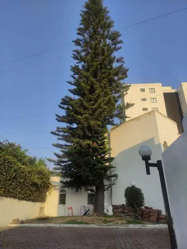 Hace un par de meses mi madre adquirió una casa, la cual estoy remodelando, y en el frente tiene un árbol de estos que se llama Araucaria, una conífera que crece muy alto.