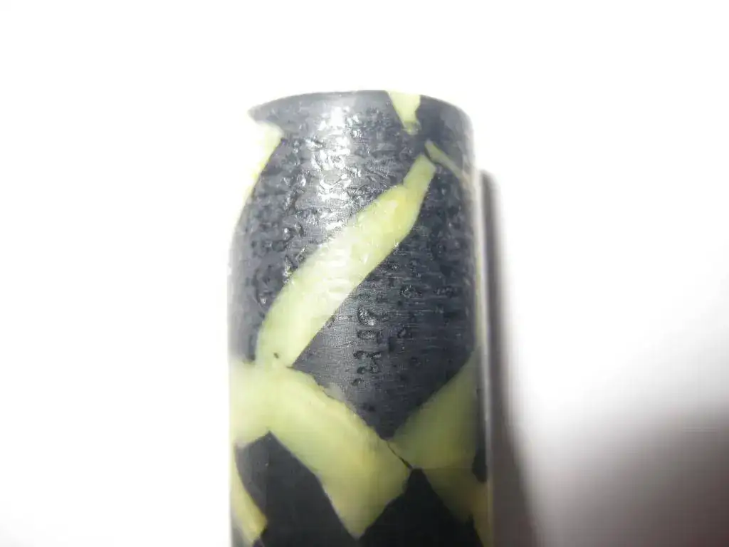 Siguiendo vuestros consejo la he pulimentdo y quitado los defectos más visibles que tenia. Su celuloide es muy bonito; su tamaño magnifica, y su pumin, aunque no es el original, es muy suave de de un tamaño apropiado para la pluma. Ahora solo me falta arreglarle el sistema de carga, se la enviaré a un profesional. Una vez solucionada esto sera una pluma preciosa para el dia a dia.