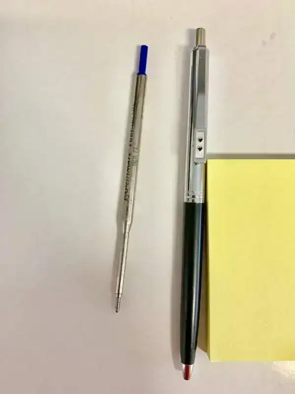 a ese boli de la foto probablemente le puedes encajar una mina estándar de punta estrecha y funcionará aceptablemente...
