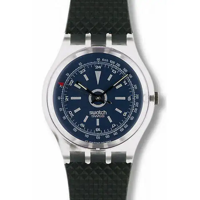 Me gusta cómo aún sencillo tiene distintas escalas, buscando un diseño militar-deportivo resultón. Creo que esa es una de las debilidades en los swatch, o parte de su firma, que los hace tener fecha de caducidad. Buen sábado!El mío era este Swatch, modelo Turbine, de en torno al año 90. Le tenía mogollón de cariño y se me rompió el enganche de plástico de la caja con la correa jugando al baloncesto.