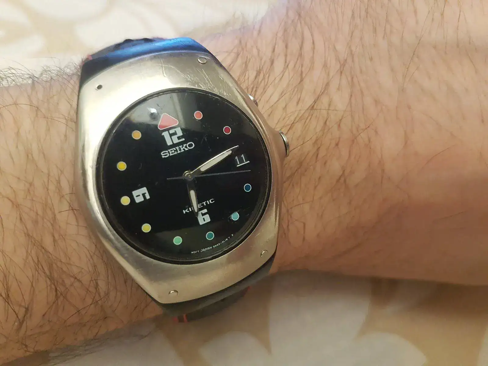 Seiko Kinetic del noventayalgo. Este no era propiamente mío (era de mi padre), pero yo flipaba en mi adolescencia con un reloj que se "cargaba solo" al moverlo. Tiempo después lo heredé, y aquí esta conmigo. Tras un cambio del condensador, funciona como el primer día.Ver el archivos adjunto 2324599