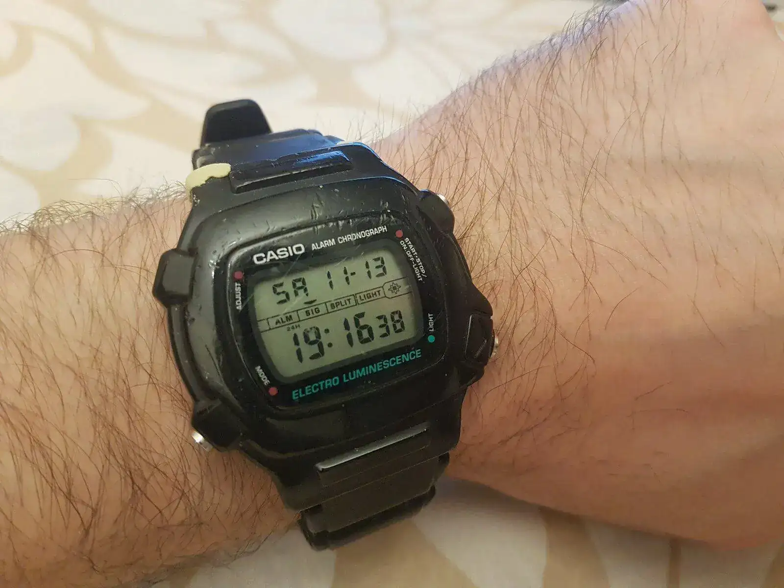 Casio W-740. Un clásico todoterreno con iluminator. A este no le tengo tanto cariño, pero bueno, fue un regalo de reyes. Tengo pendiente apañarle un poco mejor el roto en las "patas" para la correa.