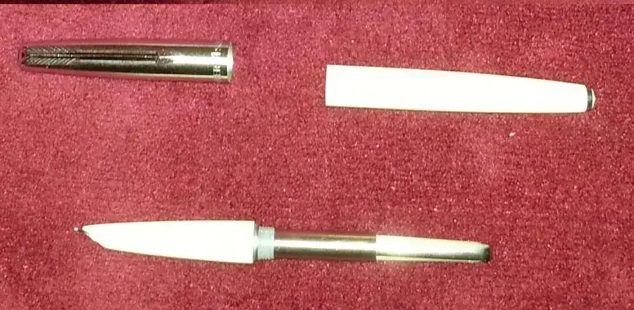 Tiene una historia curiosa detrás. Según he leido por la red, la marca compraba elementos para ensamblarlos y en los 60 llevó la distribución de Inoxcrom, antes de fusionarse con esa marca. También se lee que es imitación de las parker 21-51, aunque a mi me parece mas la de una 61...