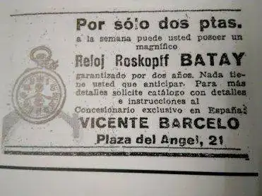 Vicente Barceló Santonja murió en Madrid en 1954, y por las características de los relojes Batay que he visto, se puede deducir que se dedicó al ramo de la relojería y joyería hasta el final de sus días.