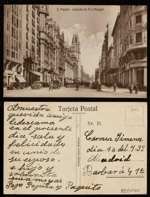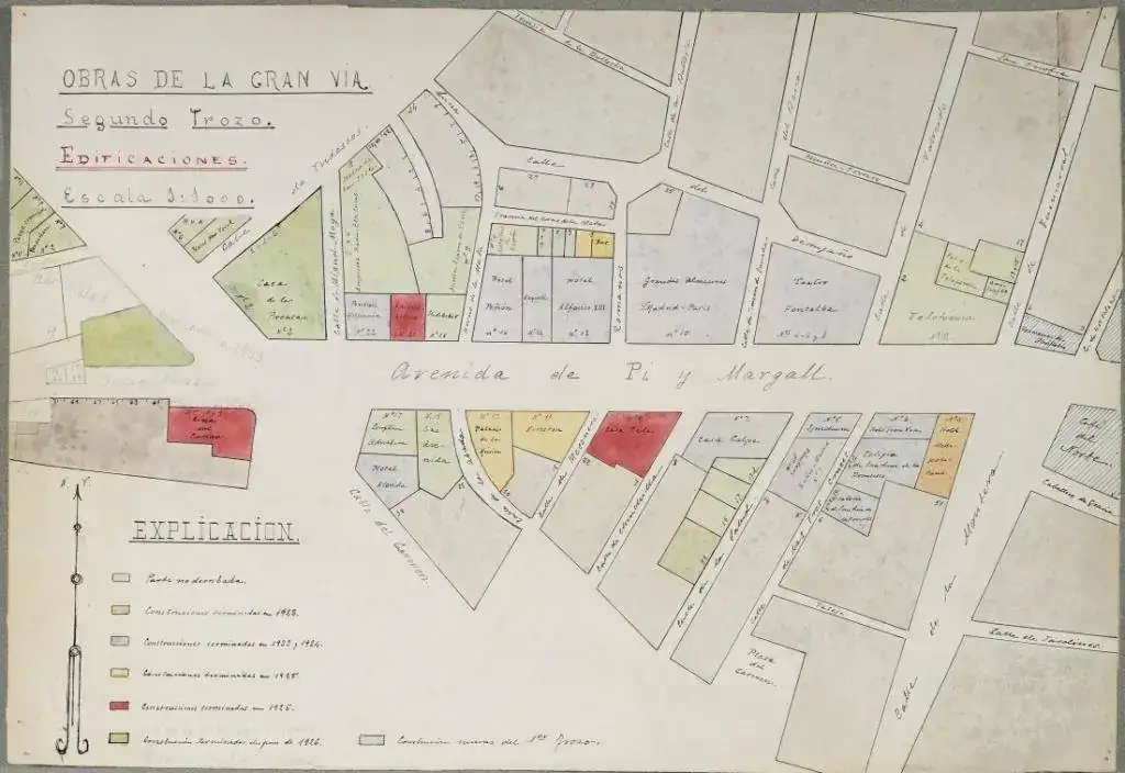 Hasta la Guerra Civil la Gran Vía era considerada como tres avenidas sucesivas, constando de tres tramos independientes. Por lo tanto, el recién construido rascacielos de la Telefónica (el primer rascacielos de Europa), tenía el Número 2 de la Avenida de Pi y Maragall, pese a estar en pleno centro de la Gran Vía.