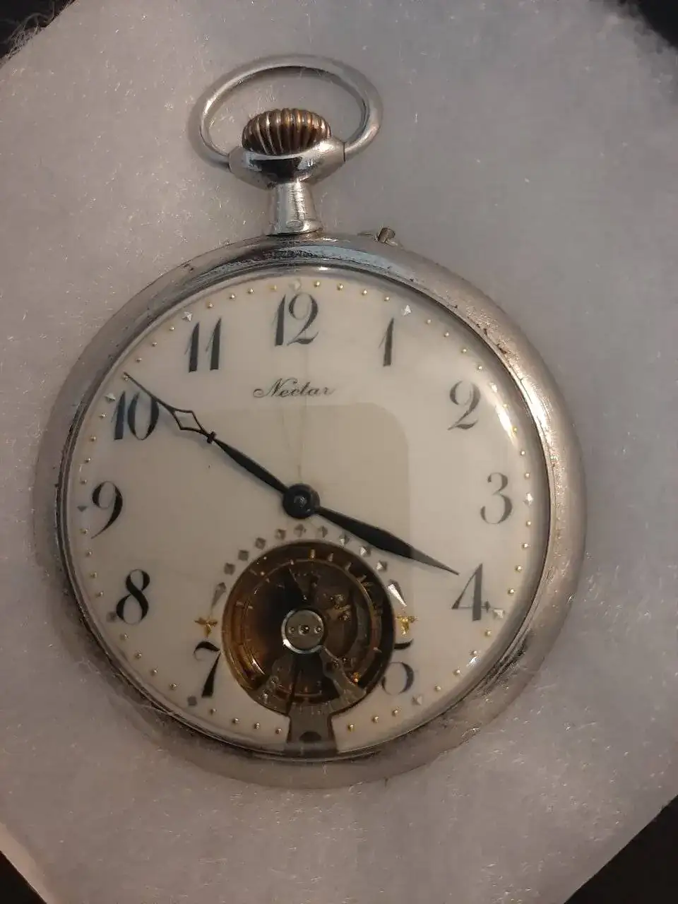 Reloj de bolsillo con resto visible.