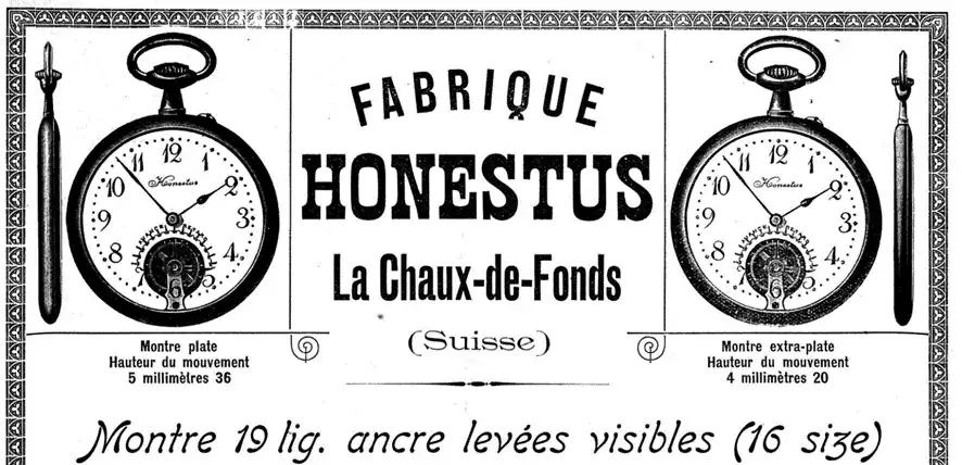 Hay anuncios comerciales de Jean Kullmer Fils para los relojes Honestus: