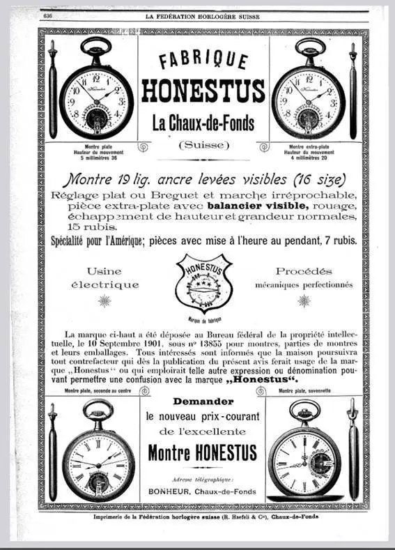 Jean Kullmer Fils (Honestus) y Leon Breguet & Cie. (Nectar), producian el mismo reloj en la misma cuidad, i.e., La-Chaux-de-Fonds.
