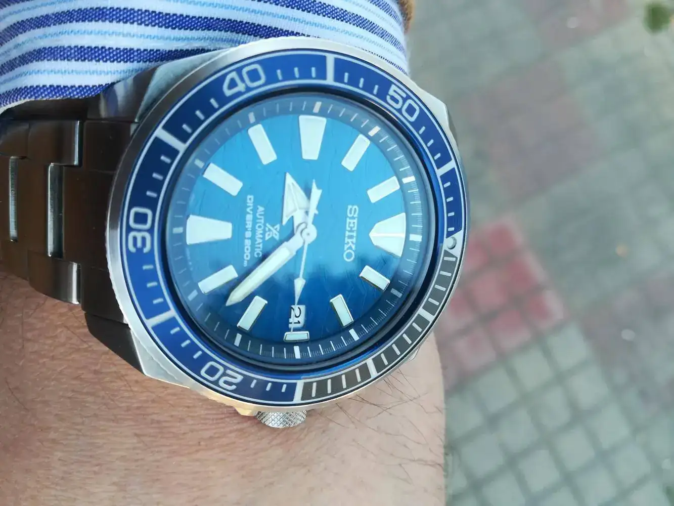 Idem, el modelo anterior, con el azul demasiado chillón para mí, me cansó en dos días. Ahora estoy pensando en substituir el armix por una correa NATO, o silicona, pero este reloj, con esos ángulos de caja que parecen cortes de katana, no sé si la acepta estéticamente así como así. Estoy viendo el tuyo ... y bueno, me lo estoy pensando.