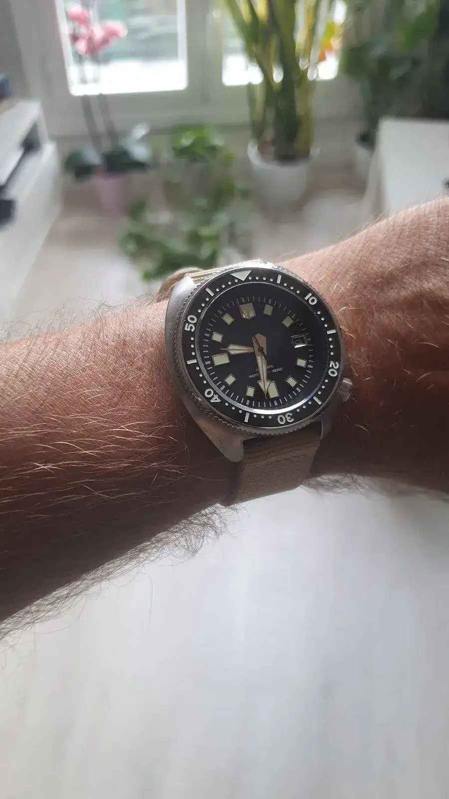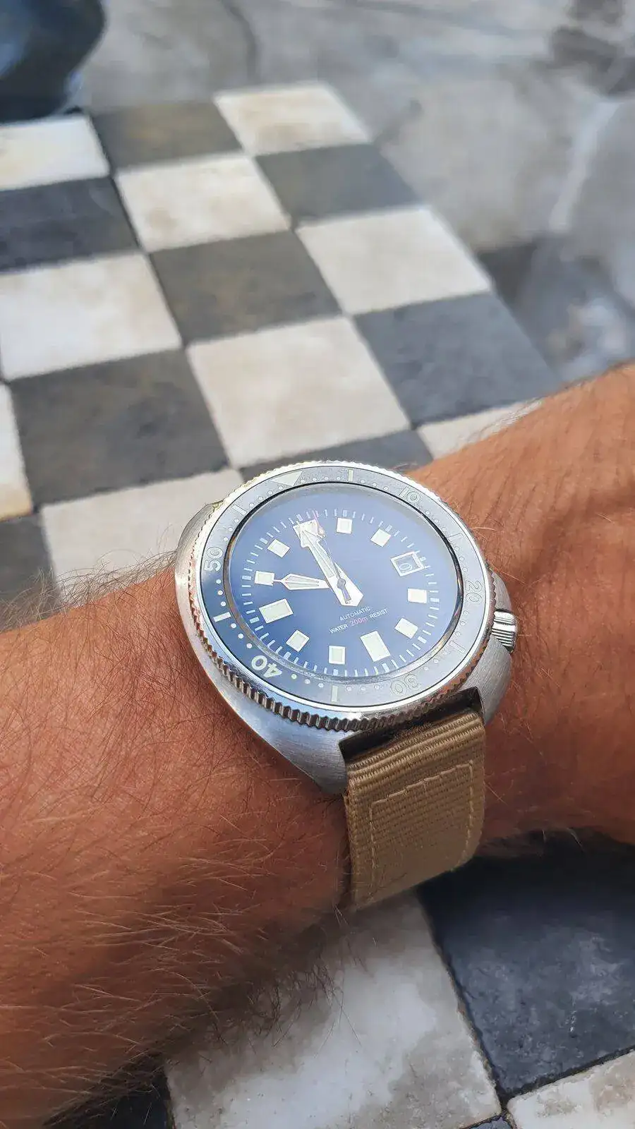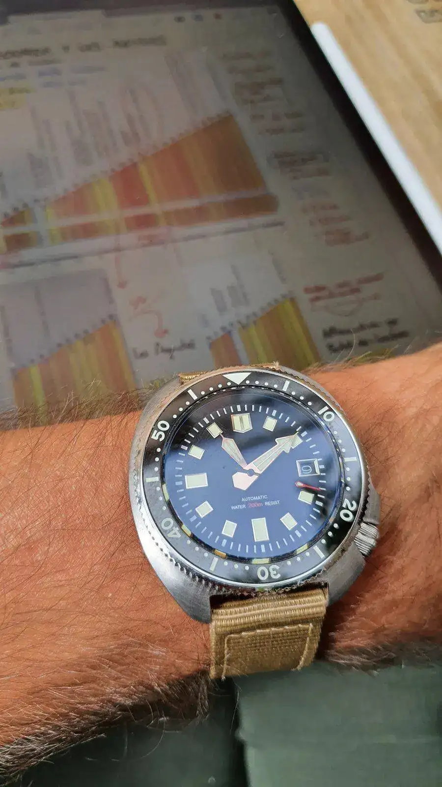 En su momento compré un homenaje a un Capt. Willard para usarlo como reloj de batalla, pero no me gustaba que se pareciera mucho al original sin serlo, así que le he cambiado dial, color del fechador y agujas para convertirlo en un 'franken' ajustado a mis manías: sin logo, agujas que permitan saber sin dudas en qué minuto estamos y segundero que no me distraiga más allá de su verdadera función (para mí, en este caso): saber que no está parado.
