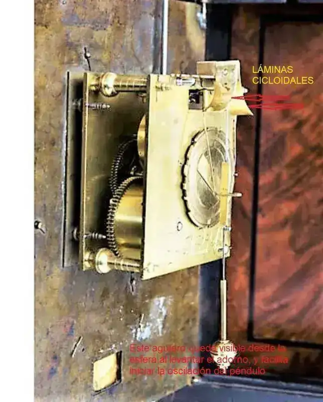 Los primeros llevaban las conocidas láminas cicloidales, que en teoría servían para conseguir el isocronismo del péndulo, pero que en la practica parece que no eran muy eficaces porque pronto se dejaron de usar.