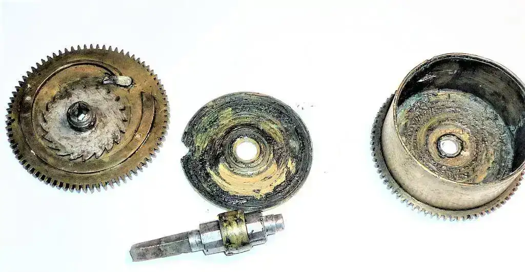 Como no es frecuente ver en internet ni en los libros cómo está construido, muestro estos detalles, y también otros aspectos curiosos como el aceite solidificado del interior y el resorte a punto de romperse por el ojal exterior.