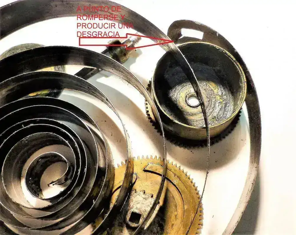 Es muy importante sacar el resorte cada vez que se hace un servicio a un reloj antiguo porque puede estar dañado, y si no se corrige se romperá en cualquier momento y provocará averías difícilmente reparables, y en un reloj de unos 350 años como este que ha llegado hasta nuestros días en buen estado, sería imperdonable.