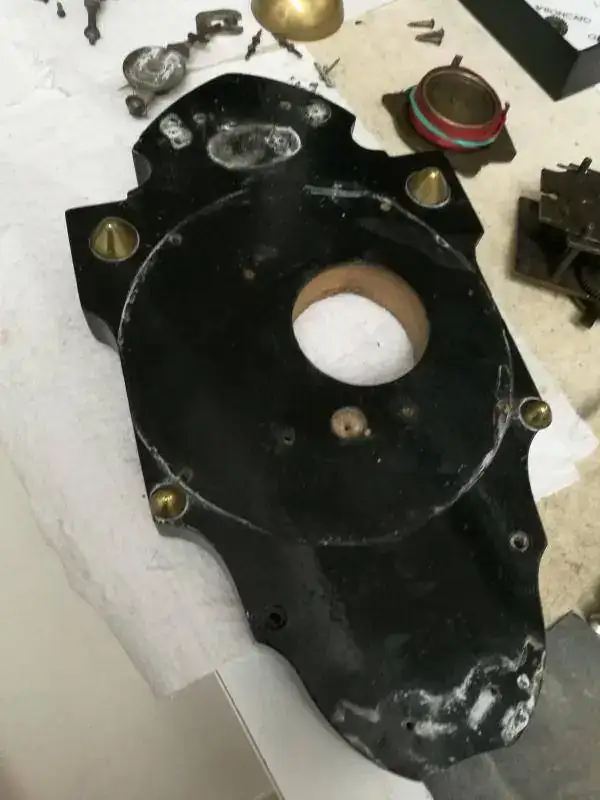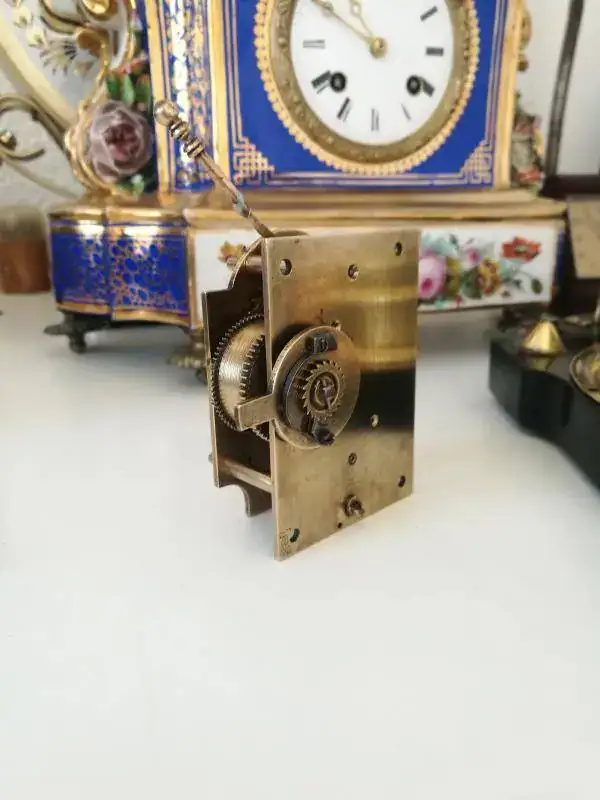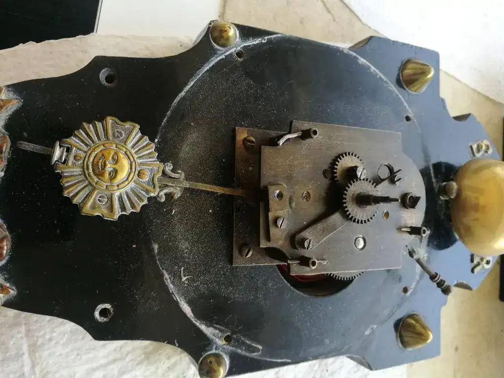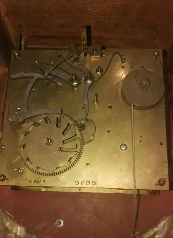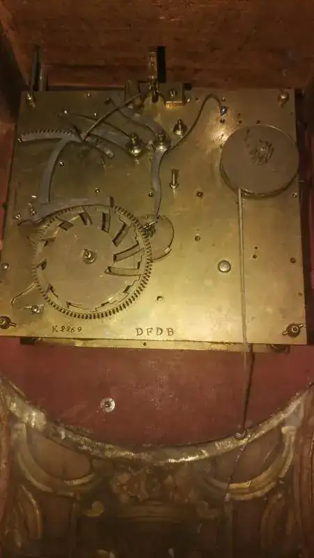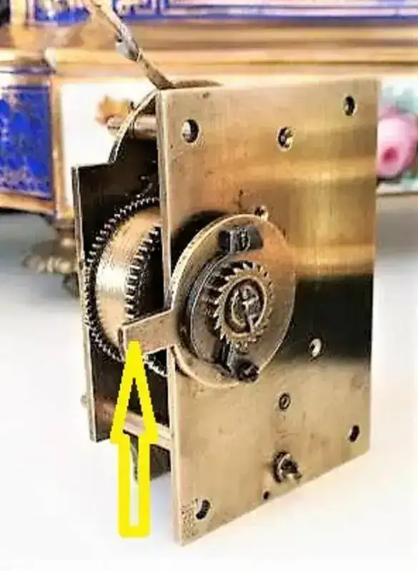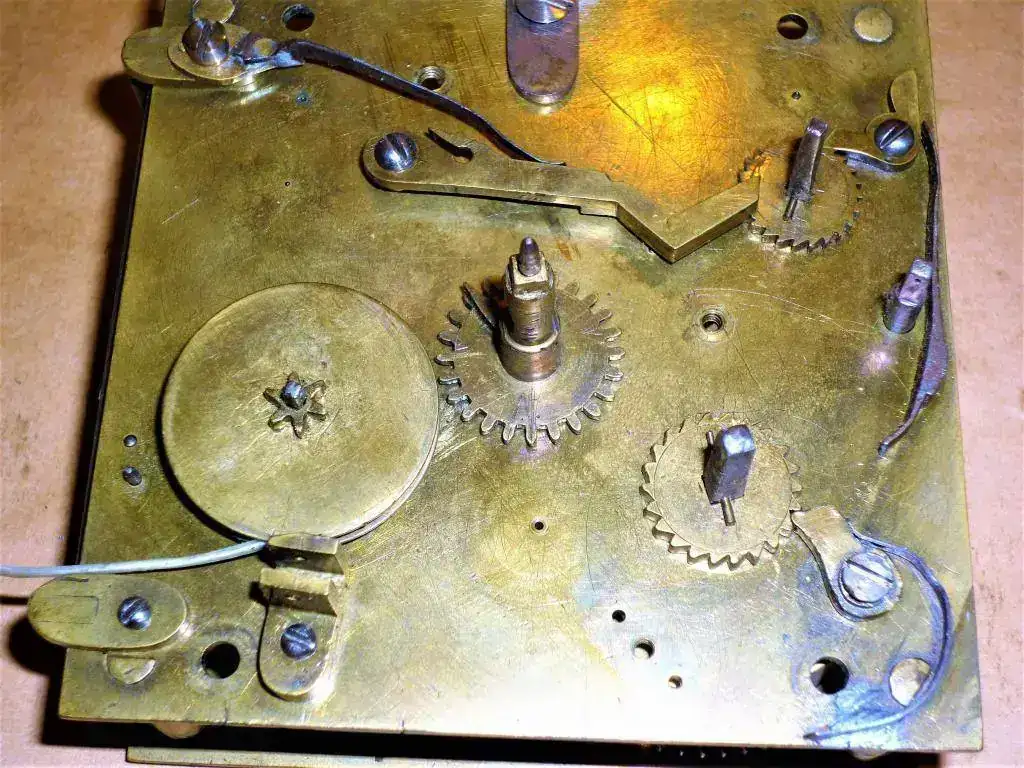 Otro aspecto curioso de estos relojes es un adorno de bronce situado debajo de la esfera que podía girar hacia arriba y dejar al descubierto un agujero desde donde se podía iniciar fácilmente la oscilación del péndulo si necesidad de abrir la puerta trasera.
