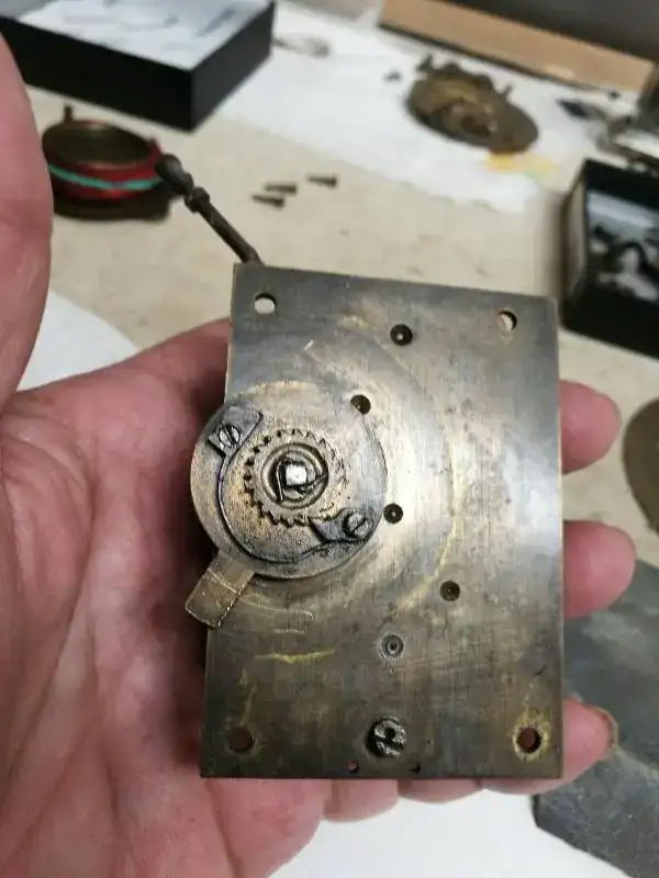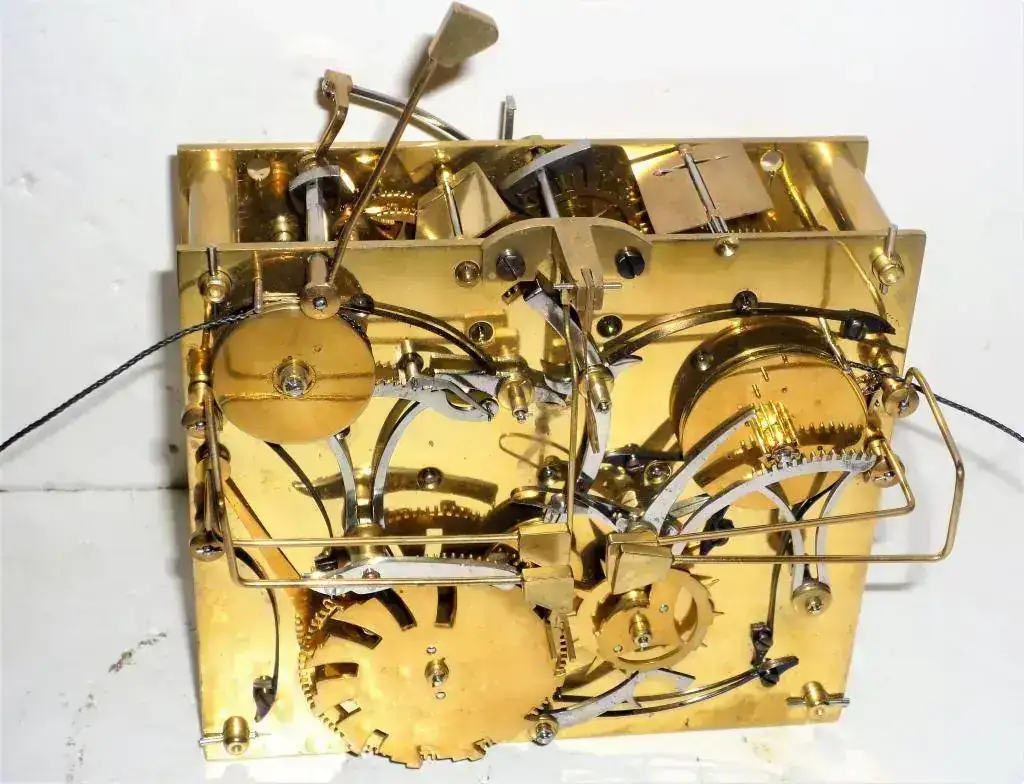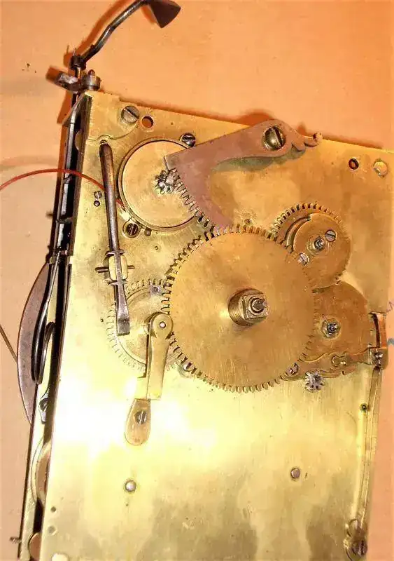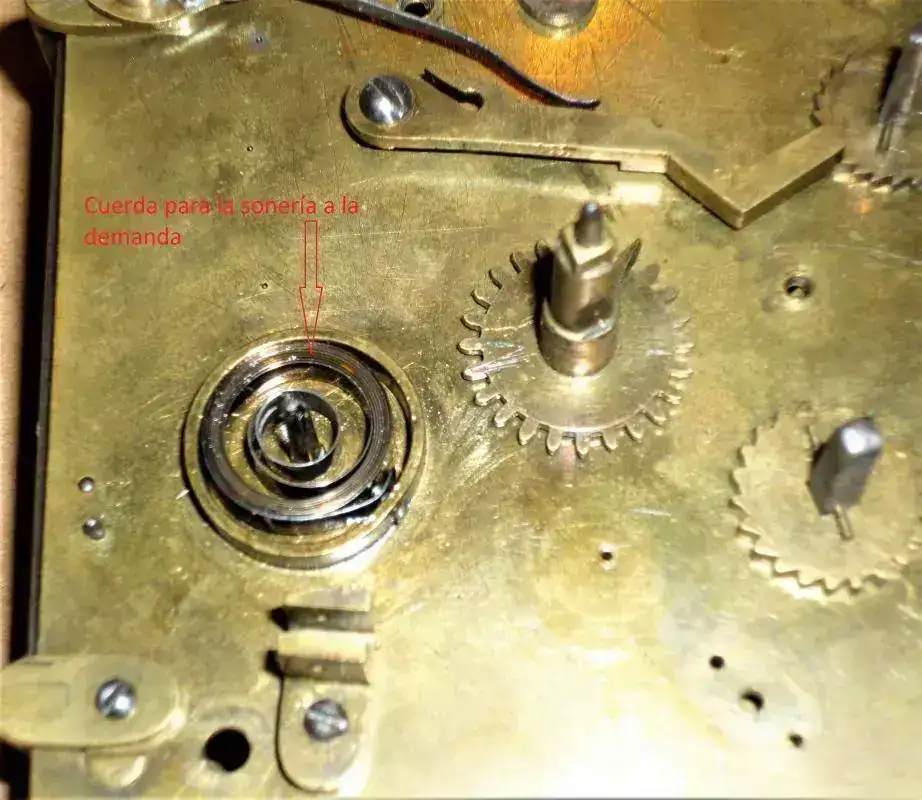 Pero como el fin de este hilo es mostrar cómo se consigue con un solo barrilete mover el sistema de movimiento y sonería, pongo imágenes de uno que restauré.