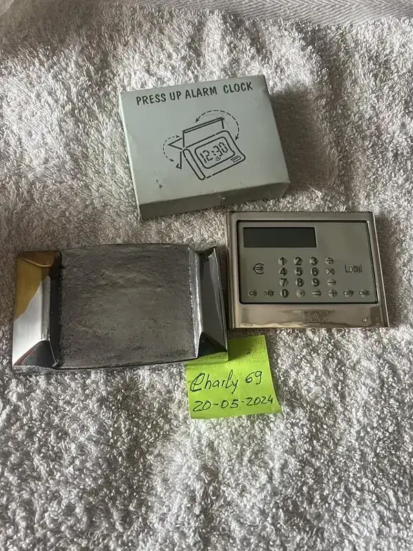 Se trata de un soporte de Post-it, de metal con un trozo dorado, de diseño ART 3 (parece una aleación de aluminio), regalo estas dos cosas: el Post-it, un porta calculadora de metal (el que lleva es de conversión del euro) regalo otra calculadora, mas un reloj digital, plegable, con alarma, de cuarzo, todo sin uso, se podría decir que las dos piezas son vintage.