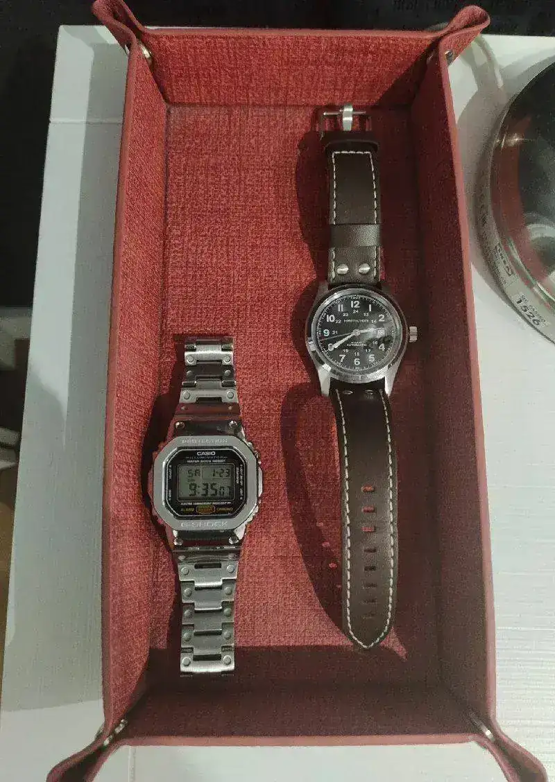 Pues que no se porque me ha entrado el gusanillo después de verlo por internet de buscar un soporte de reloj lo más cómo posible para dejar el reloj, la verdad es que no me gusta dejar el reloj con el armis sobre la mesa por eso de que se ralla con el simple movimiento de dejarlo y recogerlo (o eso me parece a mi) con lo que lo dejo siempre sobre una especie de gamuza pequeña ...