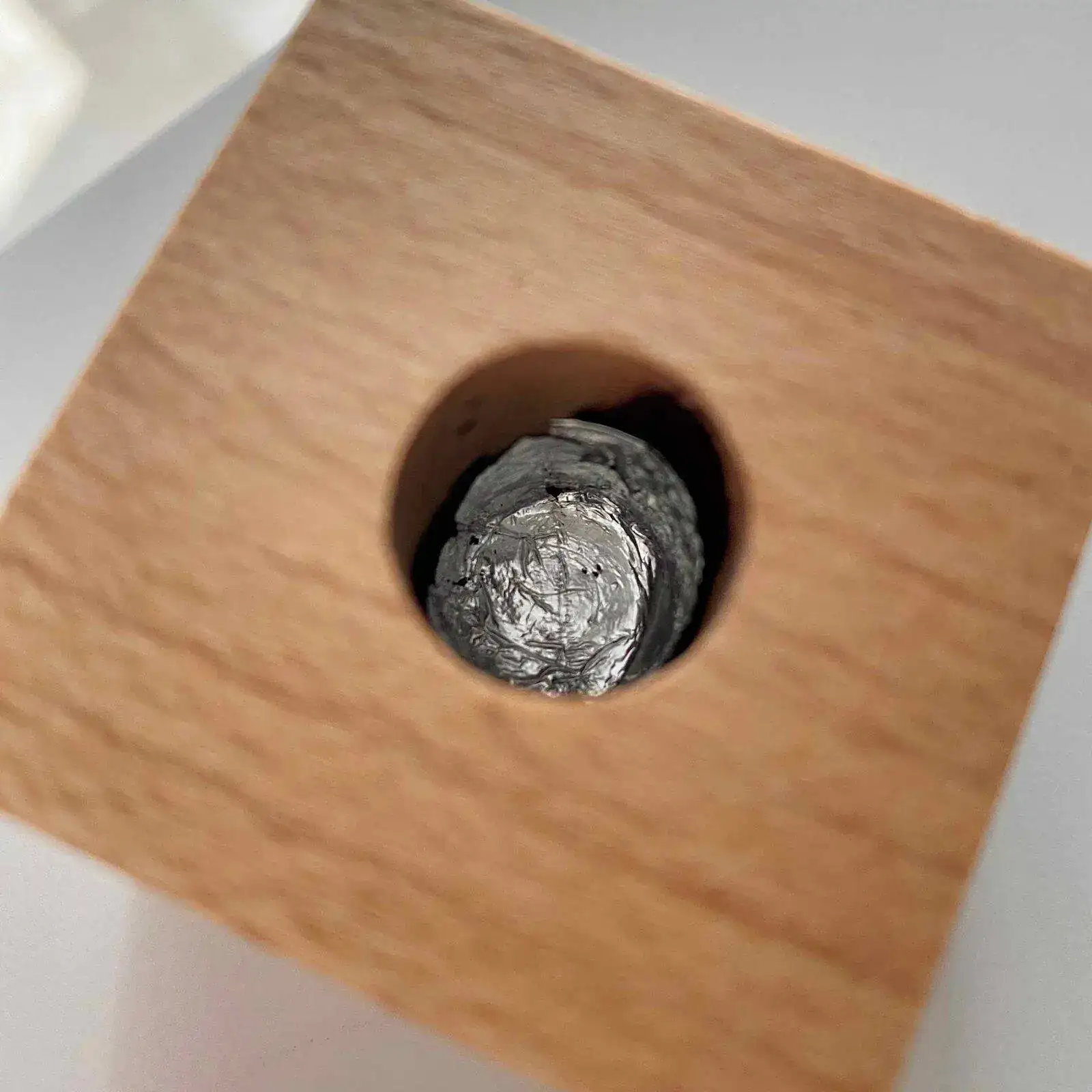Hoy trabajando he empezado a usarla y me ha pasado una cosa bastante curiosa que no pude prever: al colocar la pluma la tinta se va adhiriendo a la madera. Cuando me he dado cuenta todas las paredes del hueco estaban ya llenas de tinta. En la foto quizá no se aprecia muy bien pero está todo entintado.