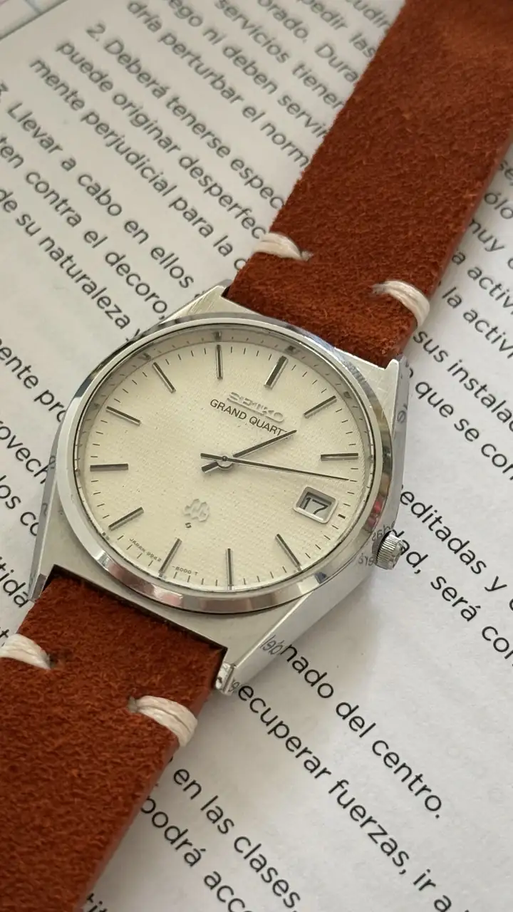 El último en entrar ha sido un vintage que he comprado en un impulso sin mucho convencimiento y que me ha enamorado . Se trata de un Seiko Grand quartz ( mayo de 1979) .
