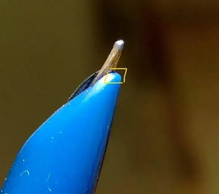 Lo del capuchón lo tenía asumido, y realmente era una nimiedad. Pero la sorpresa viene al ver el final de la sección. En las fotos parecía que el plumín estaba mal colocado. Pero en vivo, lo cierto es que la sección en su extremo estaba rota y la han pulido y redondeado. Han sido 75 euros, y el estado en general no es malo. Pero creo que la voy a devolver. Adjunto unas imagénes donde se aprecia.