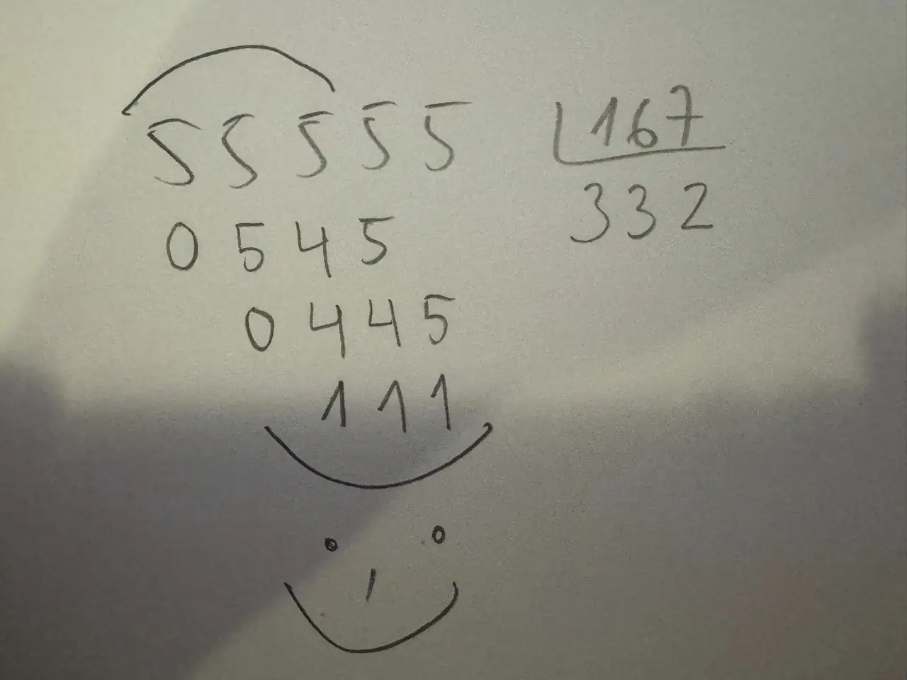 Dividimos 55555 entre 167