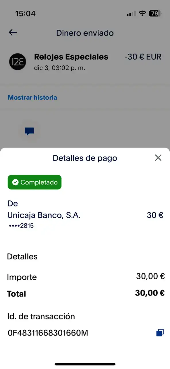 Pagadas por PayPal 2 participaciones. Id. Transacción: 9E28220996071591D.