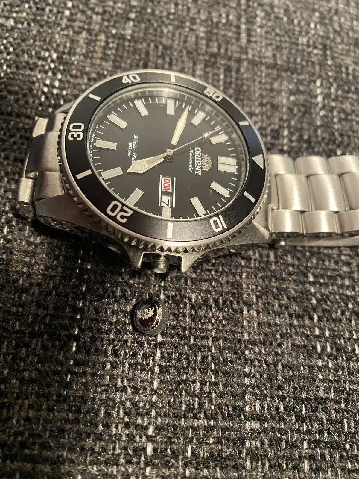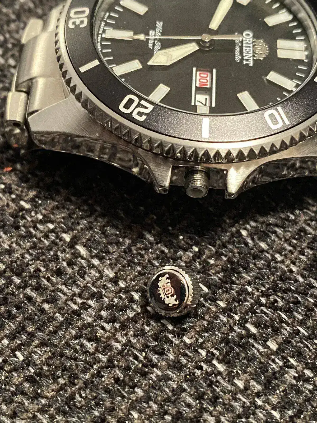 Pues que me he ido a poner el Orient para salir a la calle y al ir a poner la hora me he quedado con la corona en la mano. Como todo esto me pilla de completo novato: