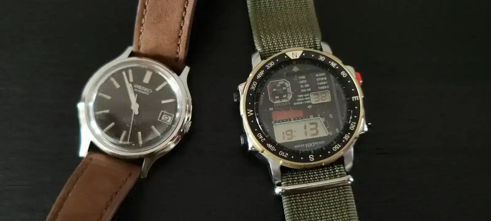 Y reloj de mi padre, seiko, reloj de mi suegro, citizen y pro trek para las salidas a la montaña.