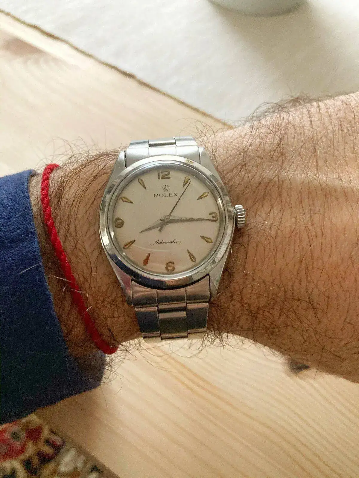 Y sobre el dial del Rolex Oyster vintage, @Tazio Nuvolari , comento lo de cambiarlo porque sufrió una mala restauración y entre otras cosas pusieron "automatic" a un reloj de cuerda manual. He de decir que me he hecho a la esfera pero aún así, si encuentro un Dial para este modelo, se lo pondré.