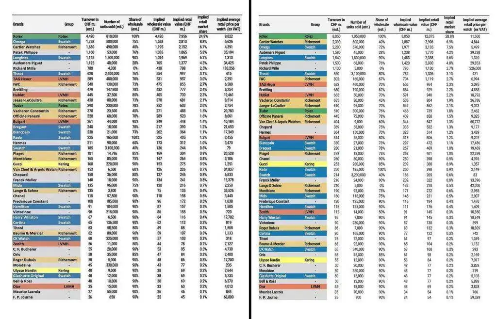 Si atendemos a estas cifras y sacamos la media por reloj vendido no salen muchos relojes con diamantes:@Ossete Es que de ese millón, muchos son de piedras y metales preciosos. Me huelo que para éstos no habrá mucha lista de espera...