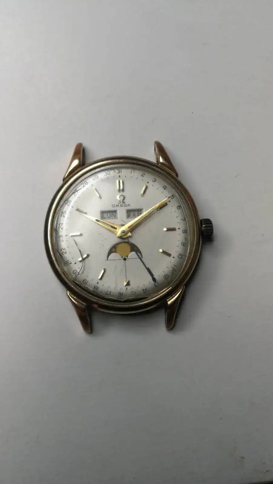 Hola a todos, acabo de ingresar a esta comunidad, ya hice esta misma publicación en el apartado de presentaciones, pero me redirigieron a vintage, así que les comento. Hace algunos días encontré un reloj bastante extraño y quisiera saber algunas cosas sobre el. Les cuento la historia. Hace mas o menos un mes y medio falleció mi abuelita y apenas hace unos días, junto a mi madre, entramos a su habitación para revisar sus pertenencias, sacamos bastante ropa que decidimos donar, algún que otro recuerdo de infancia y artilugios que incluso mi abue daba por perdidos hace años, el caso es que una vez separado y revisado prácticamente todo lo que poseía, me percaté que en el interior de un armario, en el fondo mas recóndito, había algo que parecía ser un reloj, acto seguido, lo retiro del lugar donde quien sabe cuantos años había reposado, con el propósito de inspeccionarlo, me sorprendió especialmente su inusual peso, bastante alto para su tamaño, luego le doy la vuelta para encontrarme con la tapa interior del reloj, con una inscripción que deletrea el nombre de Jorge Salcedo, en ese momento mi intriga, que ya era notable, creció con desmesurada intensidad, pues este hombre, según lo que me había contado mi abuelita en vida, era el tío de mi vis abuela, su tío abuelo y por consiguiente tío de su madre. Palabras mas palabras menos, me contaba que este personaje era un burgués influyente y sumamente adinerado que usó su fortuna para recorrer el mundo junto a su esposa. Inmediatamente relacioné este reloj con aquellas interesantes aventuras y me puse a investigar un poco, el reloj es de marca omega, había escuchado de esta marca que manufactura relojes de altísimo lujo pero jamás había sostenido uno en mis manos, la tapa que contenía la inscripción estaba prácticamente suelta así que procedo a retirarla, me quedé perplejo al ser testigo de tan espectacular maquinaria, que se antojaba exquisita incluso para el deleite de un ignorante del tema como lo soy yo. Según lo que encontré, el reloj es un cosmic moonphase de entre la década de los 40 y 50, para mi desgracia, no funciona, sin embargo el mecanismo se siente bien, aún da cuerda y no presenta problemas para configurar la hora. Encontré también que habían algunos modelos de este reloj fabricados en oro rosa, si me equivoco disculpen mi ignorancia pero creo que este podría ser uno de esos modelos, les agradecería si pueden confirmarlo o desmentirlo. Ya para concluir y no quitarle mas tiempo a ustedes, las personas que estén dedicando unos minutos a leer toda esta parafernalia, quisiera preguntarles: