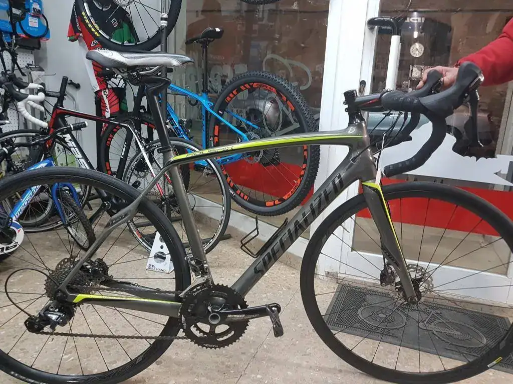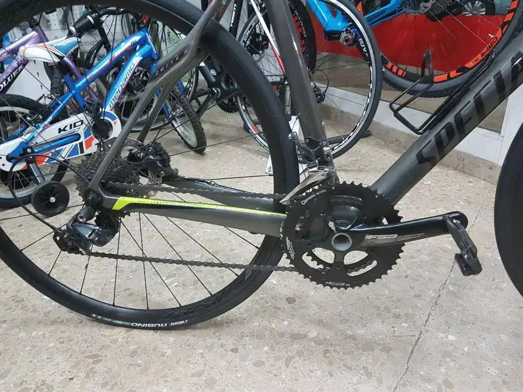 Cuadro de carbono, tija de carbono SWorks, manillar carbono FSA anatómico, Grupo Ultegra 11v, bielas FSA 50/34 (Compac), con posibilidad de Rotor. Por MP puedo enviar mejores fotos.