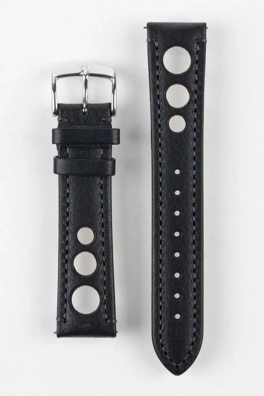 Le puedes hacer una correa de piél con pespuntes o una racing